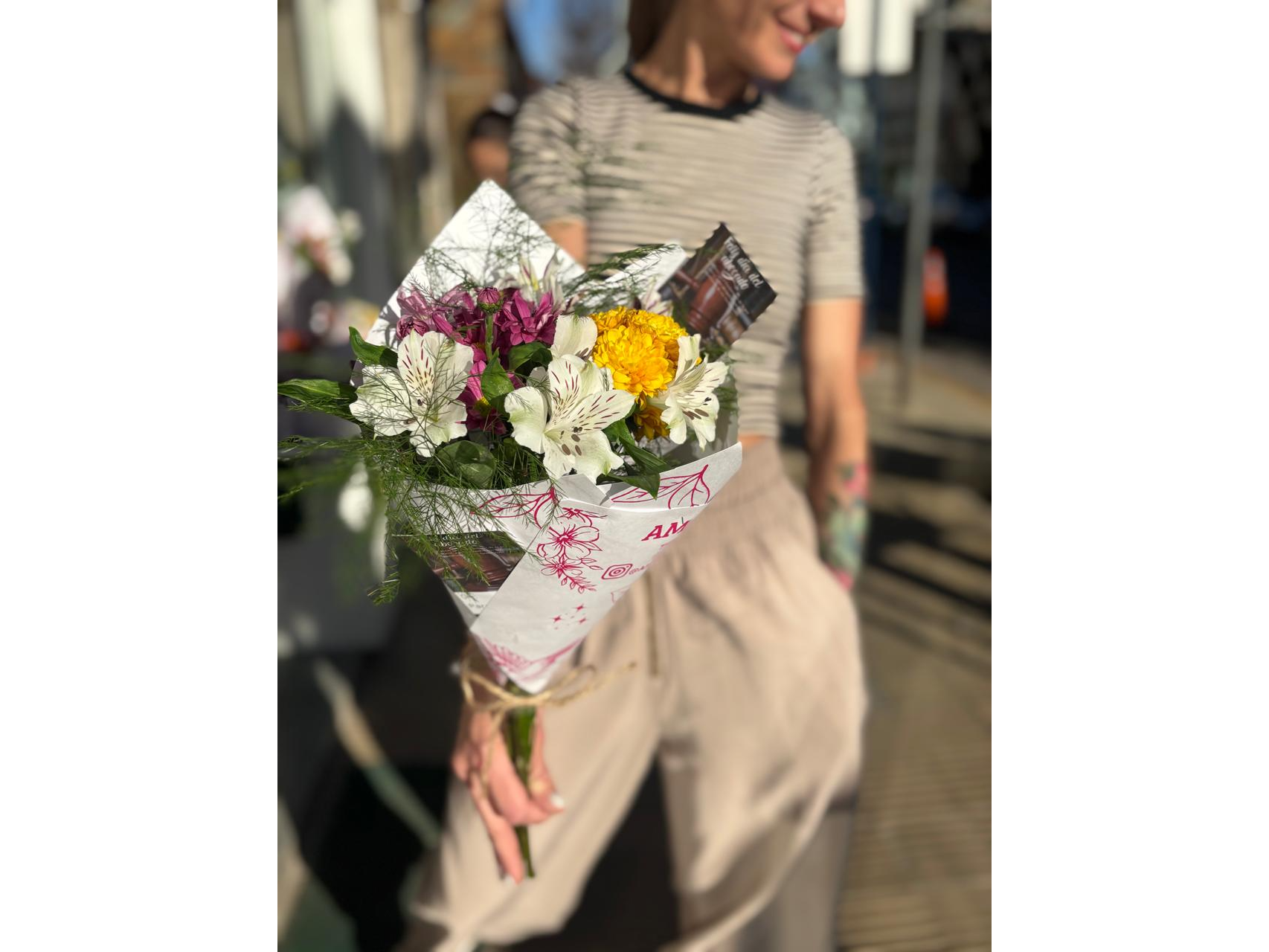 Te aseguramos es que tu ramo incluirá varas de flores frescas de estación, cuidadosamente seleccionadas y combinadas para lograr una presentación armoniosa y colorida.