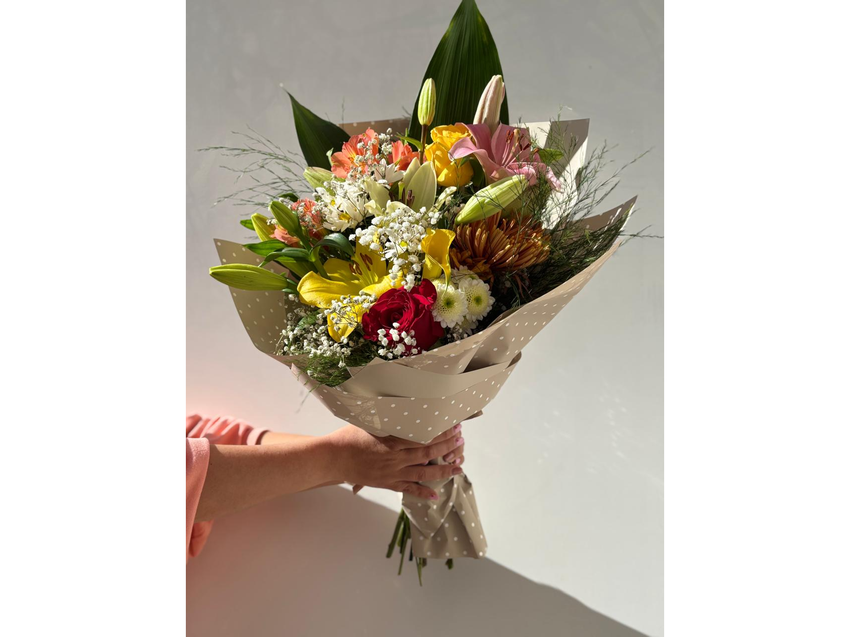 Te aseguramos es que tu ramo incluirá varas de flores frescas de estación, cuidadosamente seleccionadas y combinadas para lograr una presentación armoniosa y colorida.