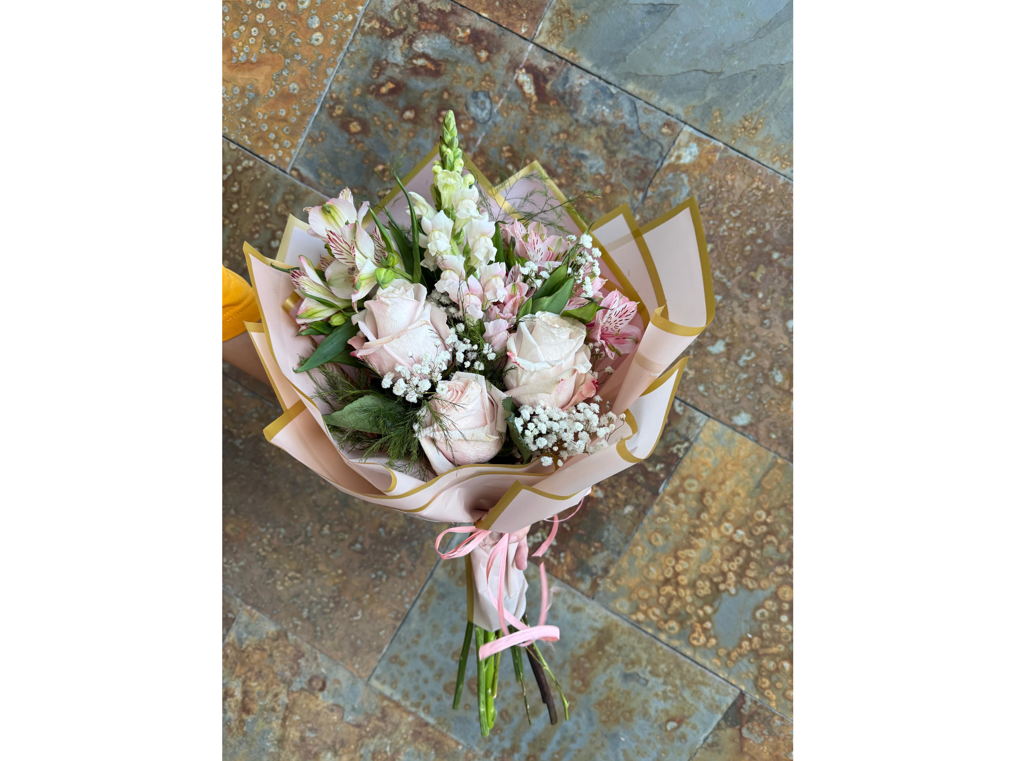 Te aseguramos es que tu ramo incluirá varas de flores frescas de estación, cuidadosamente seleccionadas y combinadas para lograr una presentación armoniosa y colorida.